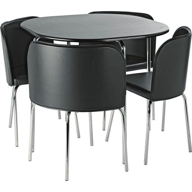 Hudson Round White Extending Dining Table With 4 Bewley Slate Fabric Chairs Furniture And Choice from www.furniturechoice.co.uk Even if you don't have a separate dining room in your home, this dining furniture can be used at a small side of your kitchen, or a corner of the home with a little space. Someone tipped me off that i could get the cow to move using a lead. How to make and use a simple trimmer table. Ask yourself, is this wooden chair or unintelligent woman trap really worth saving or can you get rid of it. Ours are designed with the right proportions to be comfortable to sit in until dessert. Standing desk stuck and don't know how to fix it? 4 chairs tuck neatly under table top to complete the underside of the top. Not every tiny kitchen needs a table with only two chairs, either.